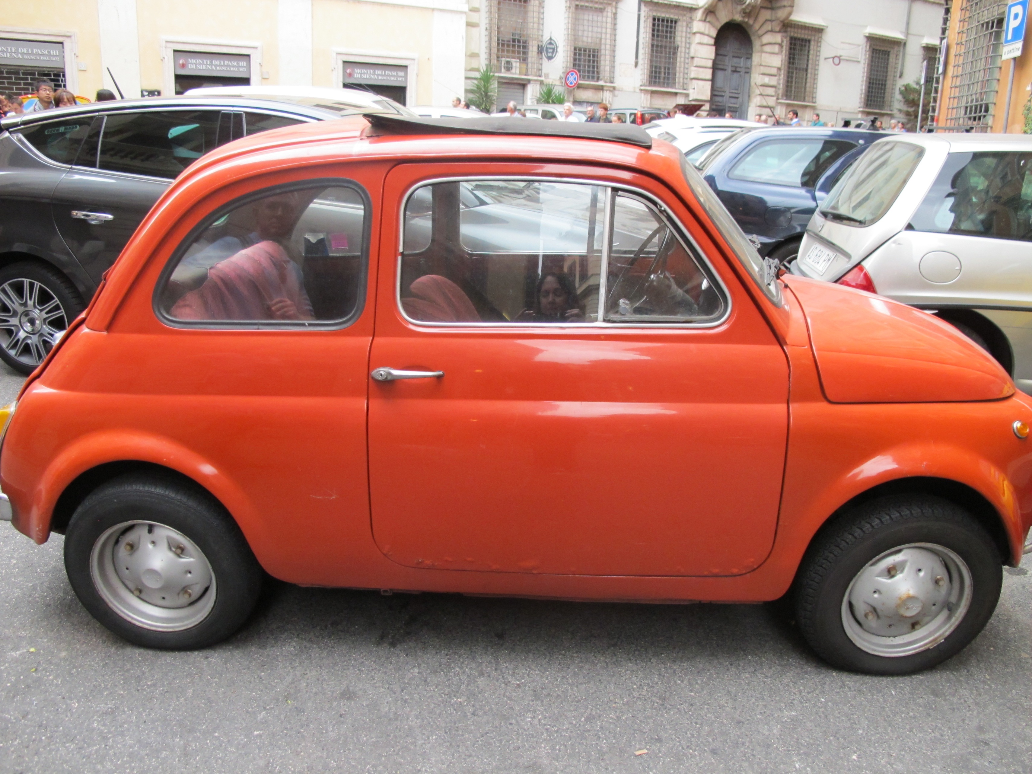 One of my favorite cars, and the car of my childhood, is the Fiat 500, the Cinquecento. This is a simply adorable death trap on wheels. Amazingly, many of these little antiques still putter around the streets of Rome.