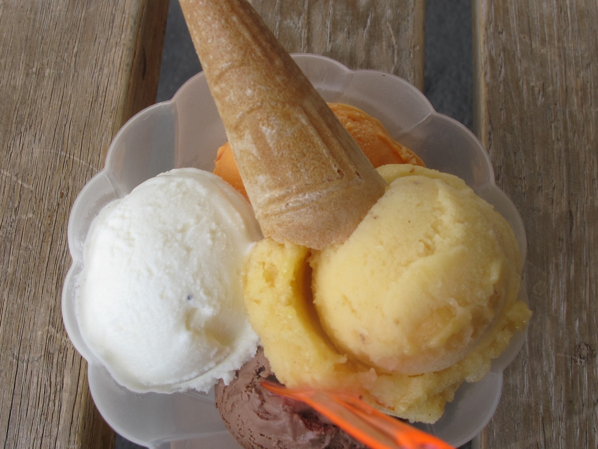 Nice service, and wow! I got the cup at the top of this post, with carrot, chocolate, and a few other terrific tastes of heaven. I’d never thought I would one day eat carrot gelato — and it’s amazing. Really!