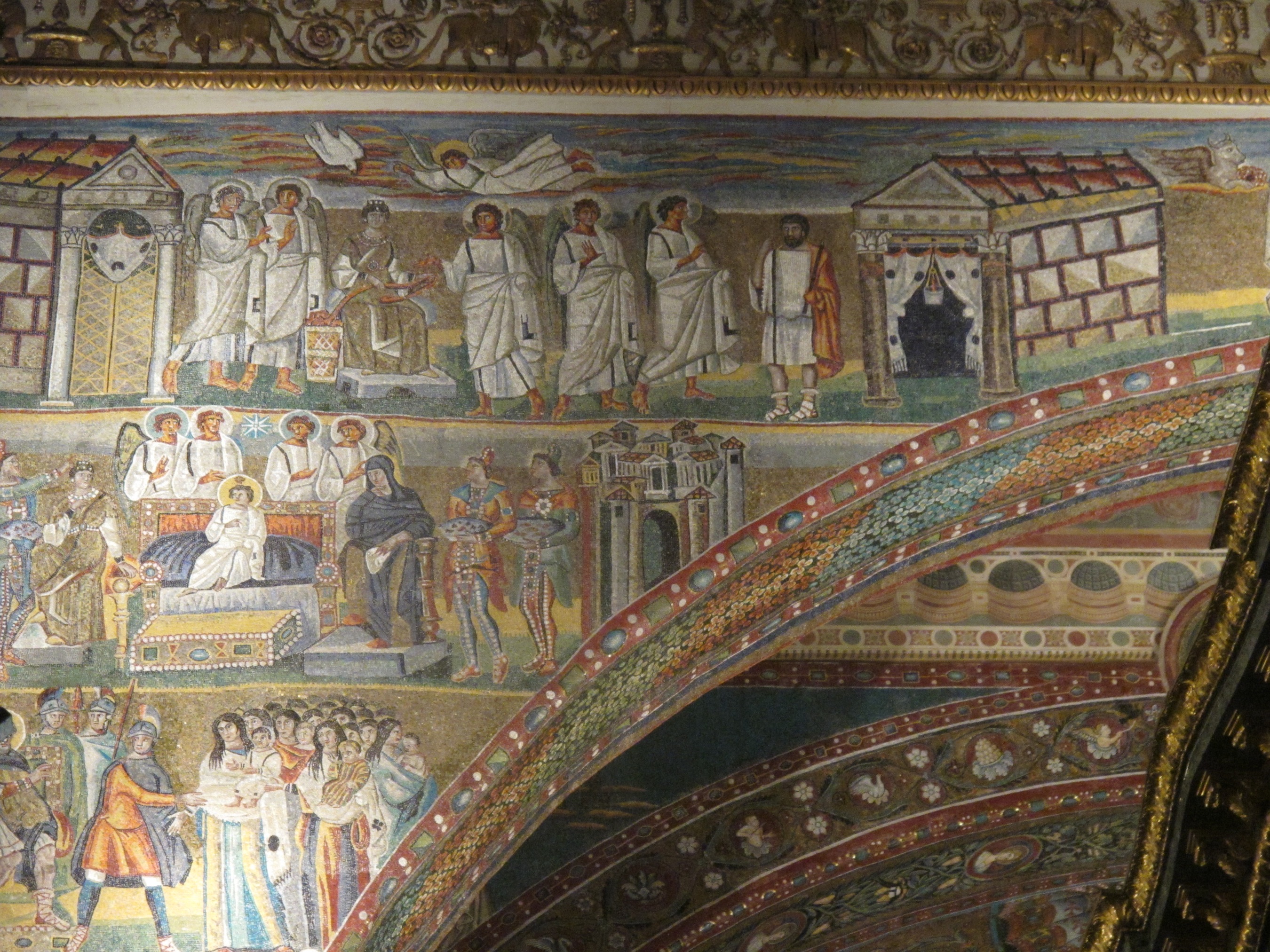 A few weeks ago we went on yet another excellent walking tour with Context Rome. The theme was “Gardens of Paradise, Medieval Mosaics.” We started with the majestic Santa Maria Maggiore on the Esquiline Hill, and then went to two nearby, smaller churches.