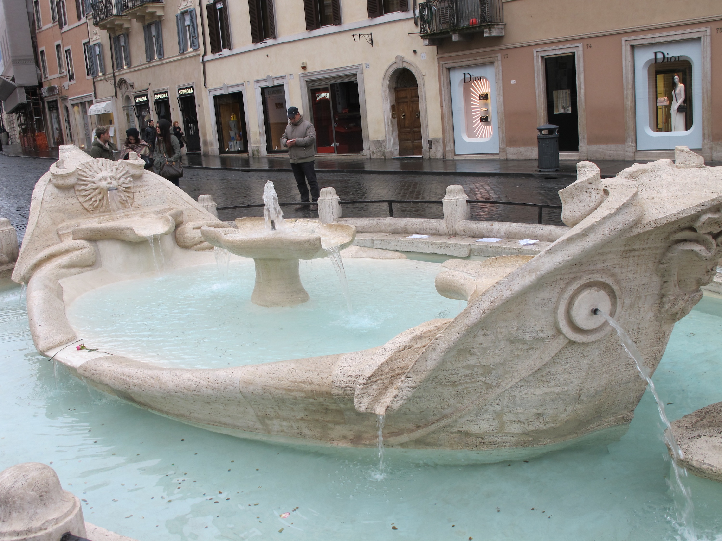 La Barcaccia had been under restoration for most of last year. When it was unveiled, it was sparking white, the whitest I recall ever seeing it. Gone were the grime and the orange-red mineral deposits that had built up over time. It was gorgeous, and people were happy to have their beloved fountain back. Old and young, resident and tourist alike, people would step out and get a drink while passing through the piazza. And, even if they didn’t need a drink, the sight and sound of the fountain, happily gurgling away, would make them smile.