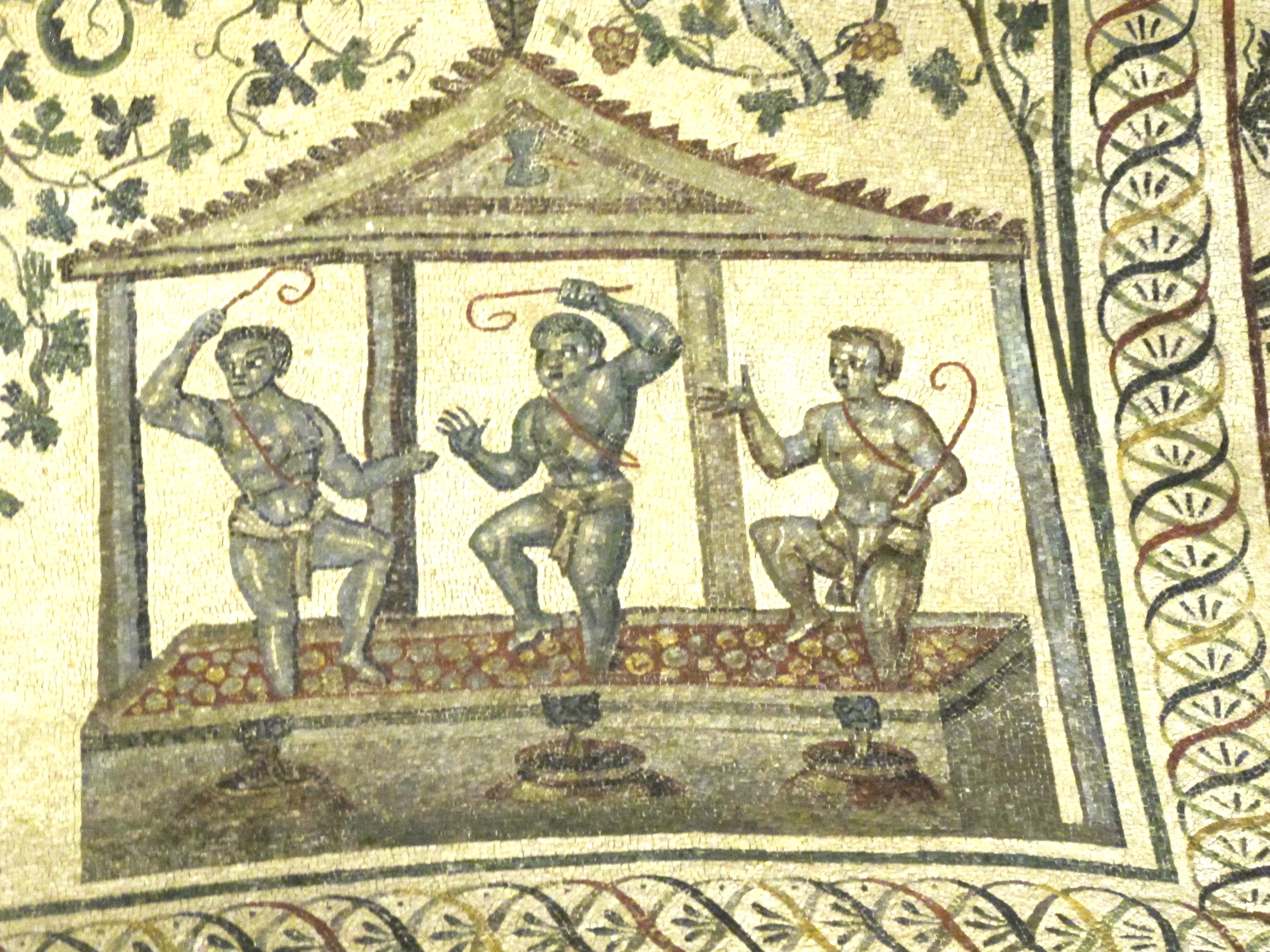 Complex, curving grape vines are one of the plants shown, and in some scenes we see people crushing those grapes to make them into wine: