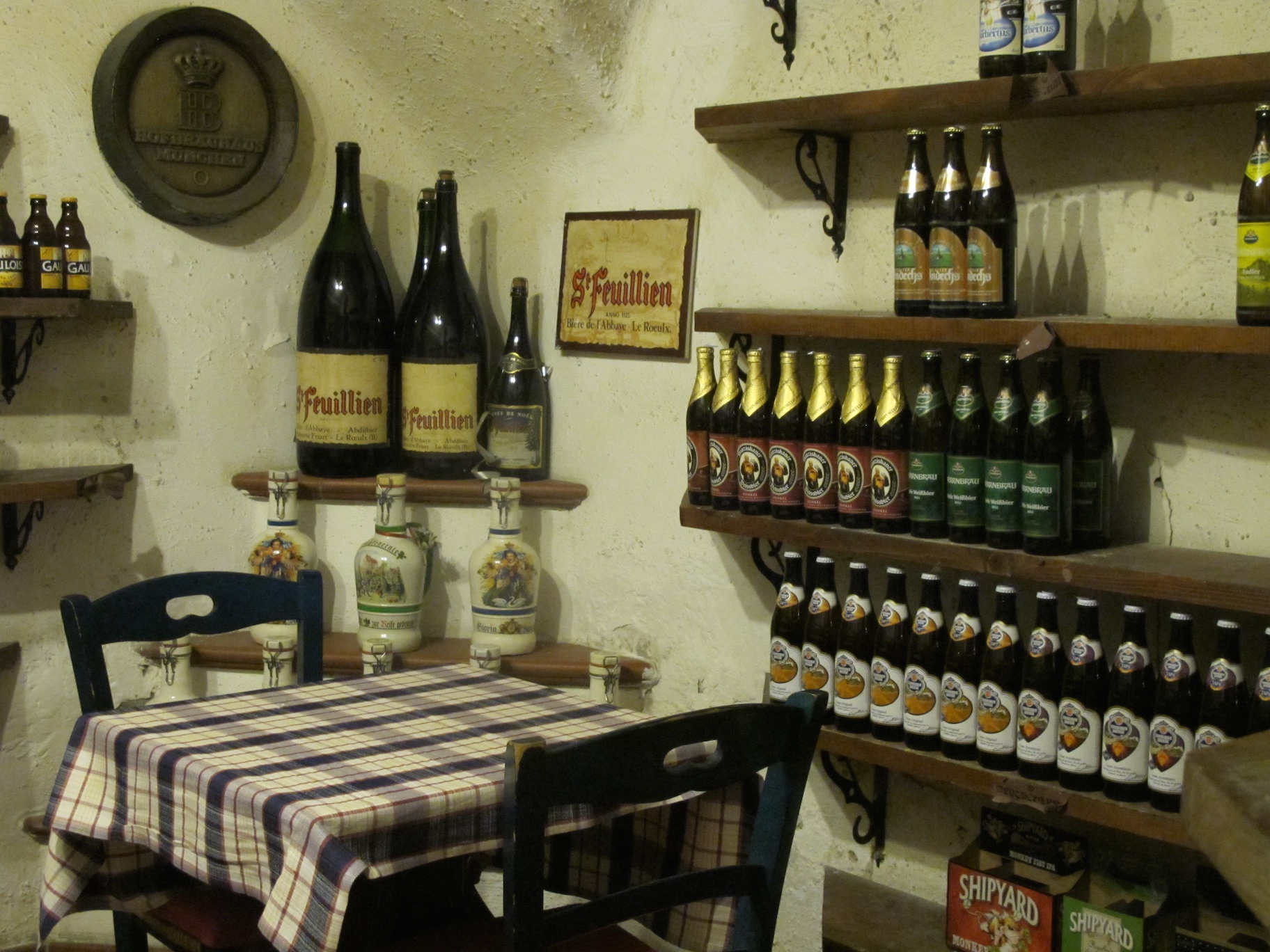 Oasi della Birra (Oasis of Beer) at Piazza Testaccio was a wonderful, divey-little place with a top floor that is a gourmet market and a basement that reminded me of DC’s Bier Baron (née Brickskeller), what with the small maze of rooms, brick walls, and dusty beer paraphernalia everywhere.
