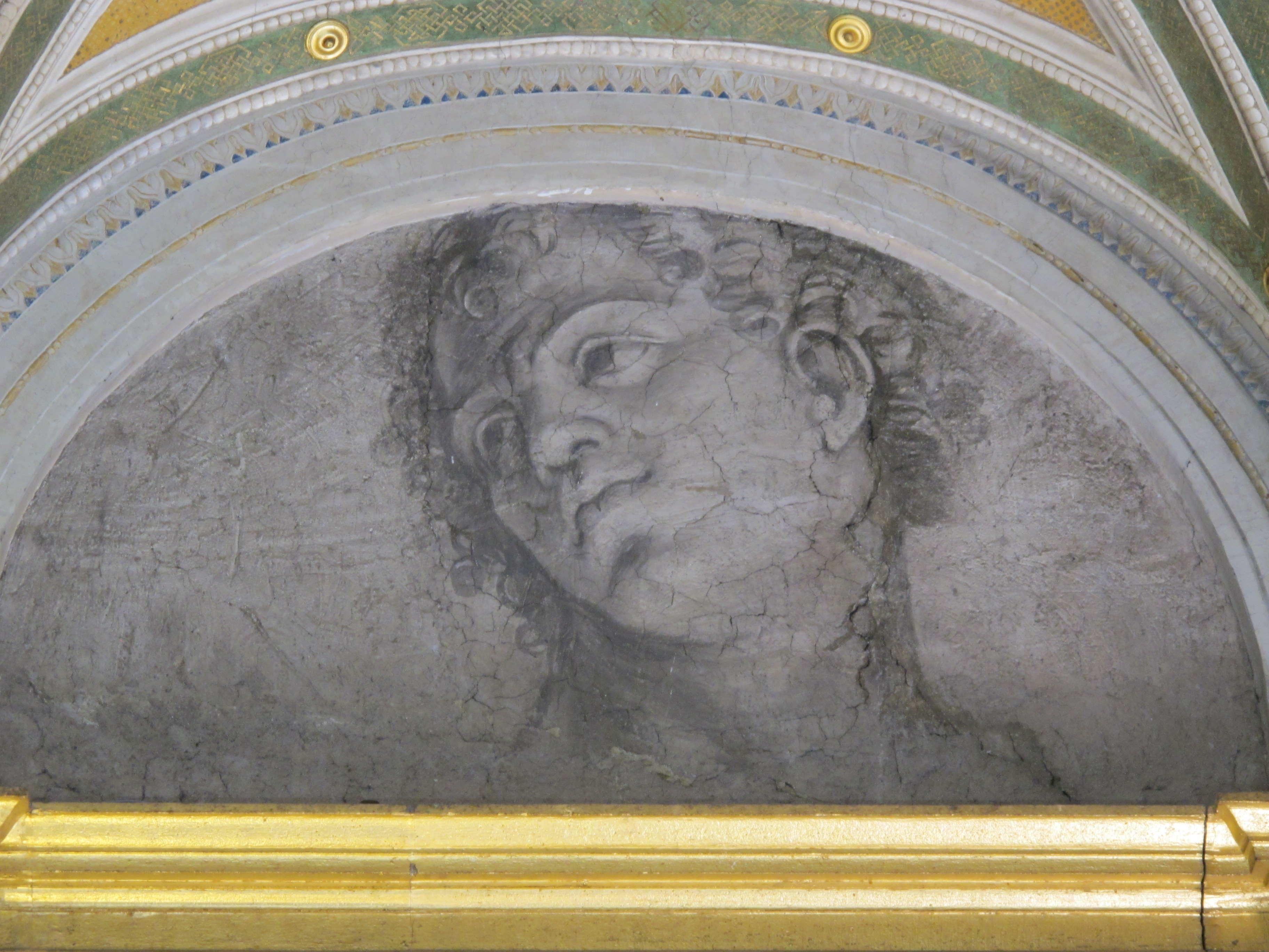 There is a lovely myth associated with Villa Farnesina. In the gorgeously ornate Loggia of Galatea is a lunette with a black-and-white sketch of a man’s head, which looks nothing like any of the other paintings in the villa. Legend attributed this drawing to Michelangelo, who allegedly drew it as a joke on Raphael. While this is no longer thought to be true, there has got to be a great story underneath it all.