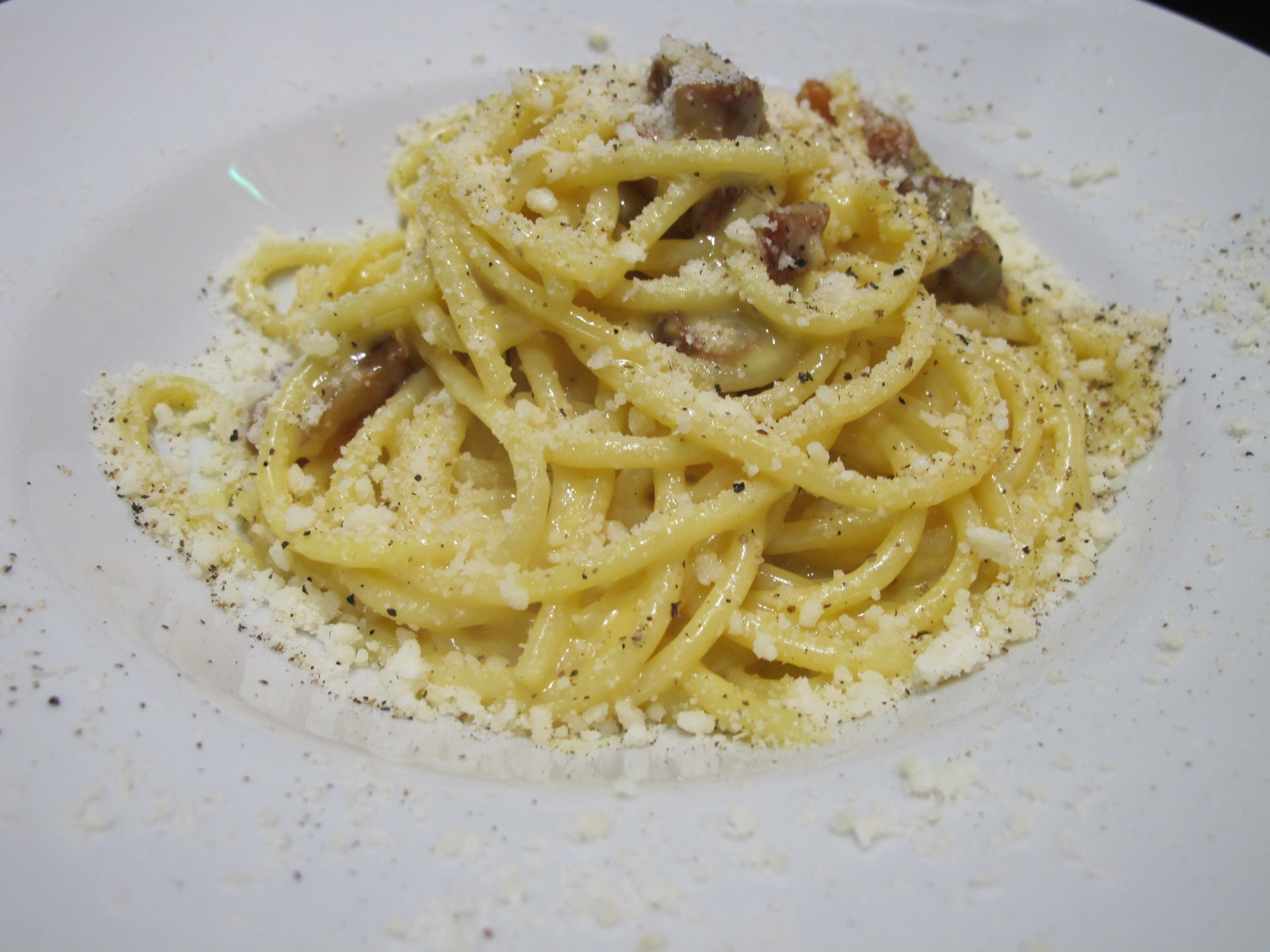 The cured meats are terrific, but today’s lunch was all about pasta, one of the best things on Rosioli’s menu. The Carbonara, shown at the top of this post, is always good. As is the Amatriciana…