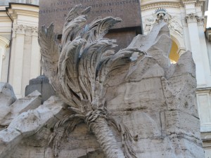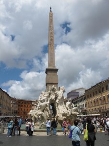 I’ve written a series of posts on obelisks but have saved the best for last. It may not be the largest obelisk in Rome, but it sits in the most magnificent of places, smack dab in the middle of Piazza Navona, and held aloft by Gian Lorenzo Bernini’s Fountain of the Four Rivers.