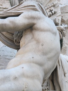 Finally there is the Nile, representing Africa. The figure’s head is veiled, symbolizing that no one as yet knew the source of the Nile.