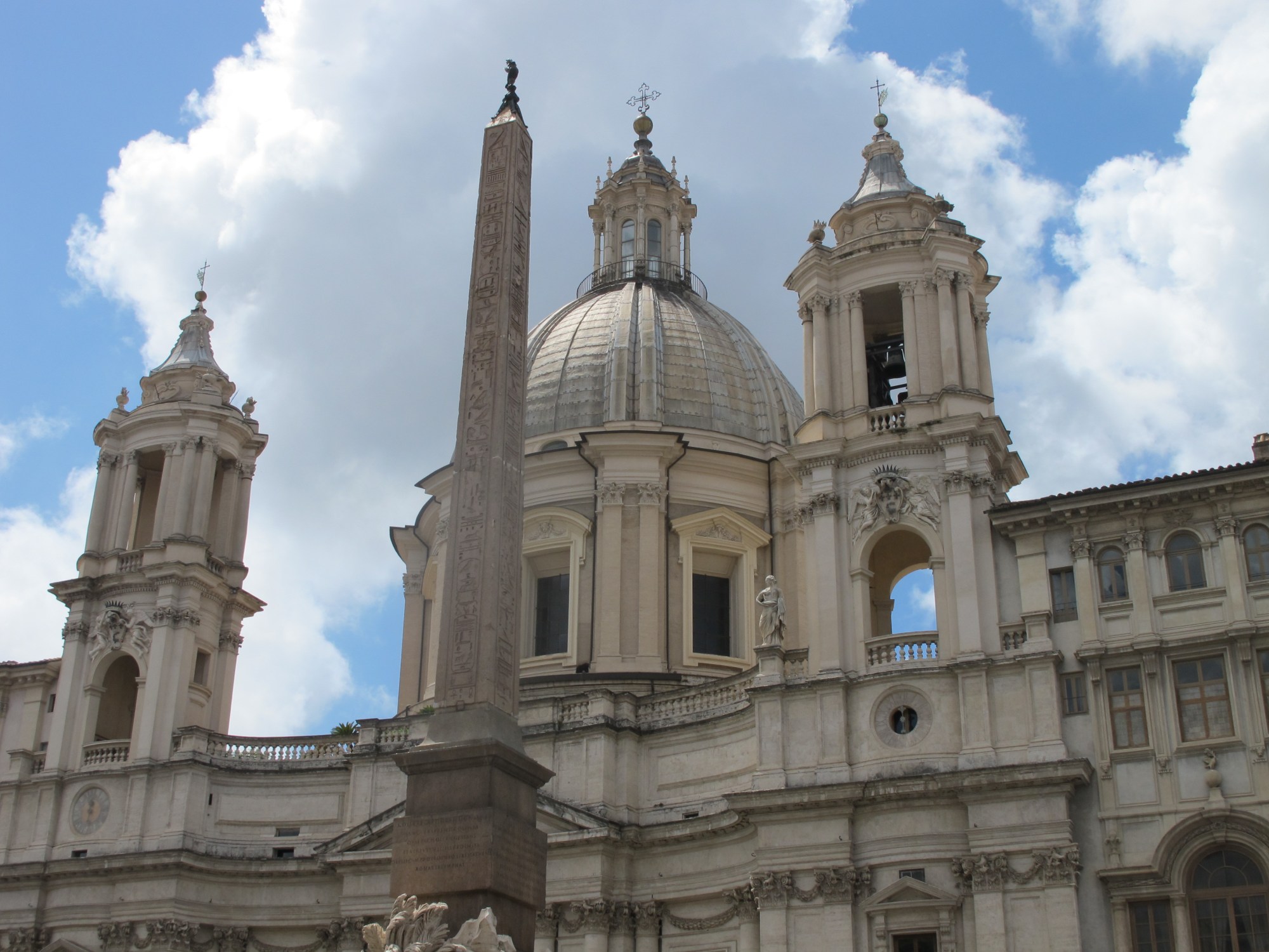 I’ve written a series of posts on obelisks but have saved the best for last. It may not be the largest obelisk in Rome, but it sits in the most magnificent of places, smack dab in the middle of Piazza Navona, and held aloft by Gian Lorenzo Bernini’s Fountain of the Four Rivers.