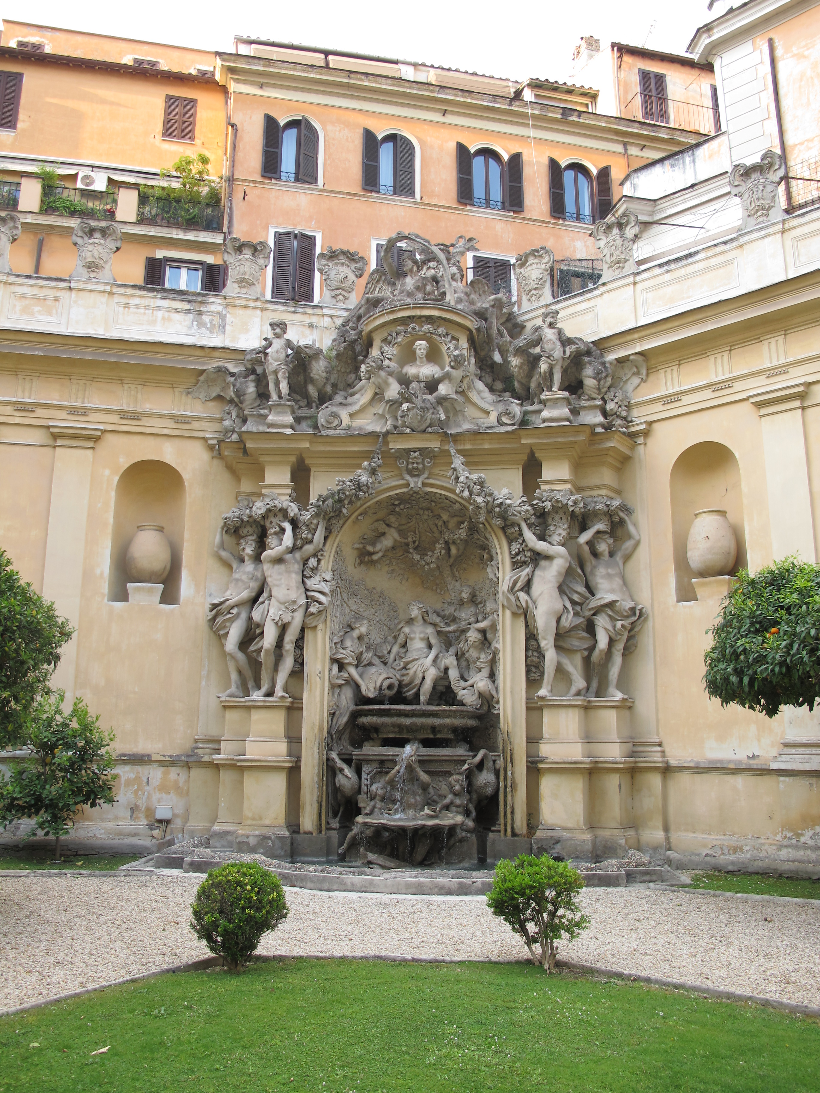 The Borghese name may be famous to tourists for the magnificent art collection of Galleria Borghese and the surrounding green oasis of Villa Borghese, our local park. But the Borghese family owned numerous properties, one of which is an oddly shaped palazzo not far from us. And, it is a hidden gem.
