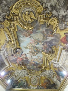 At the very end of the courtyard is Galleria Cembalo, the nickname of this oddly shaped building, which translate to “harpsichord.” The gallery, free and open to the public, focuses on photography. The exhibit we saw did have some English-language information. And, it’s housed in this beautiful palazzo!