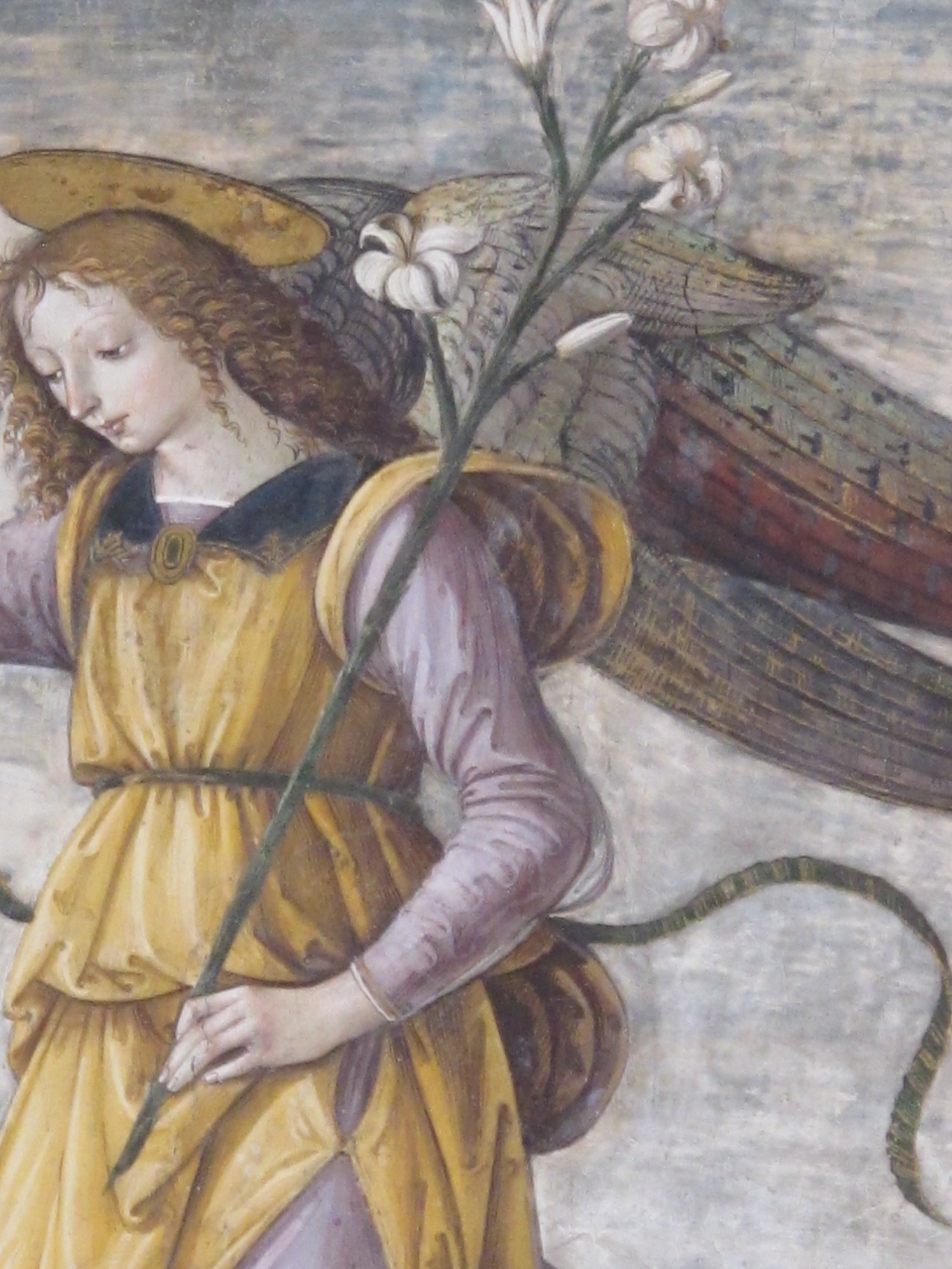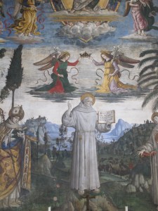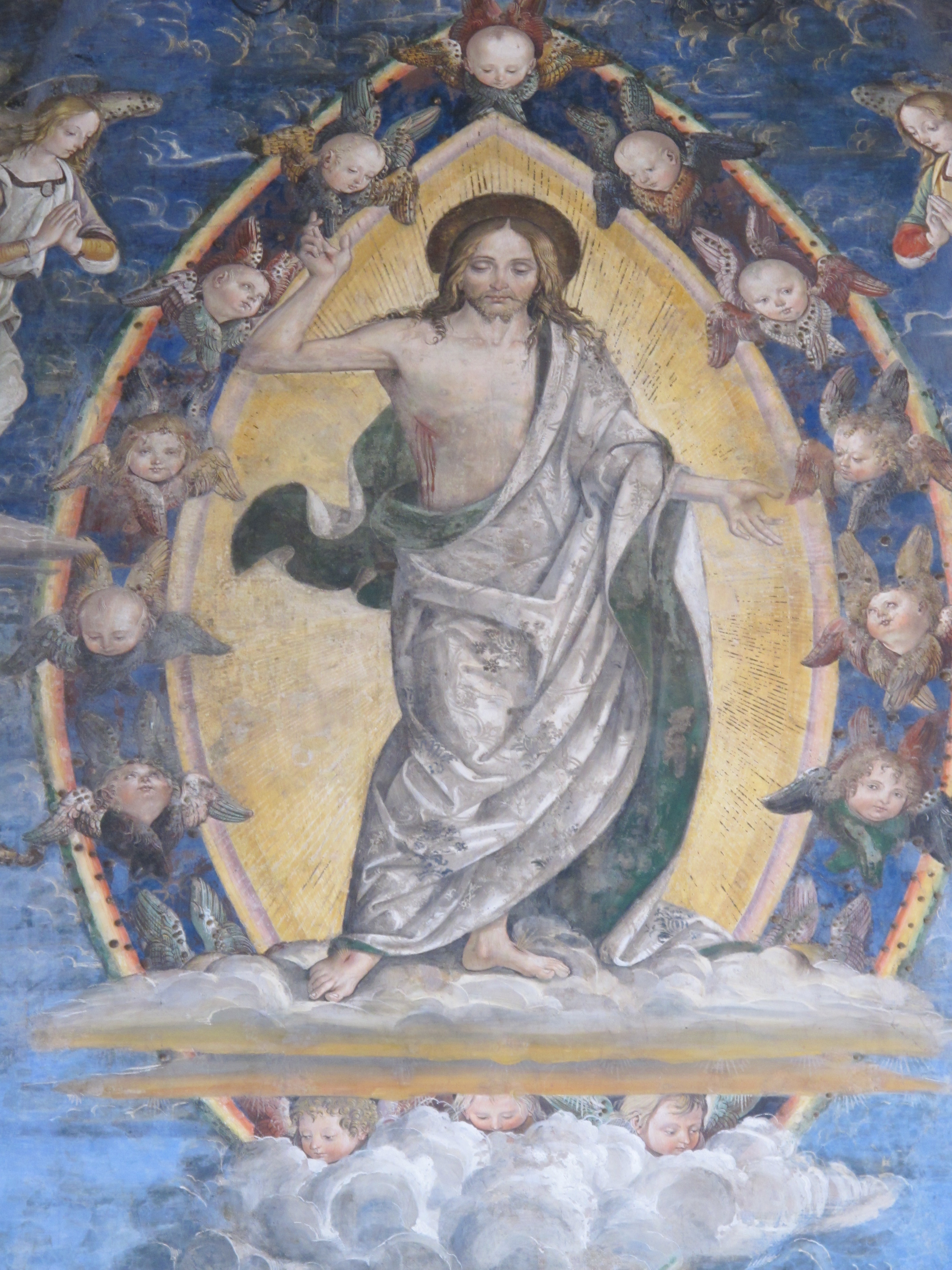 This church also holds some wonderful art, hidden away a bit in its side chapels, the most beautiful being the Pinturicchio (the “little painter”) fresco of Saint Bernardino of Siena.