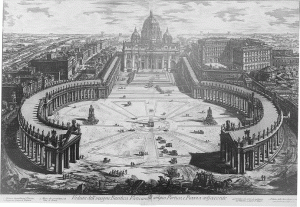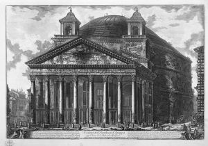 His many vedute (views) of Rome are both beautiful as art, but also preserve a snapshot of Rome in his time. For example, his view of the Pantheon captures that magnificent building at a time when it was not quite so magnificent: when the awkward twin bell towers were installed (fortunately, they were pulled down shortly afterwards).