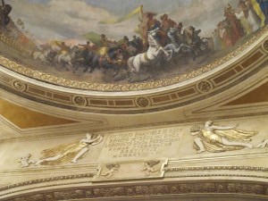 And, an inscription on the proscenium that reads, “Vittorio Emanuele III Rege, Benito Mussolini Duce, Lodovicus Spada Potenziani, Romae Gubernator Restituit MCMXXVIII—VI.”
