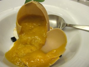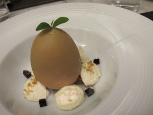 While I enjoyed the dish, my wife’s dish was a real stunner: a white chocolate egg.