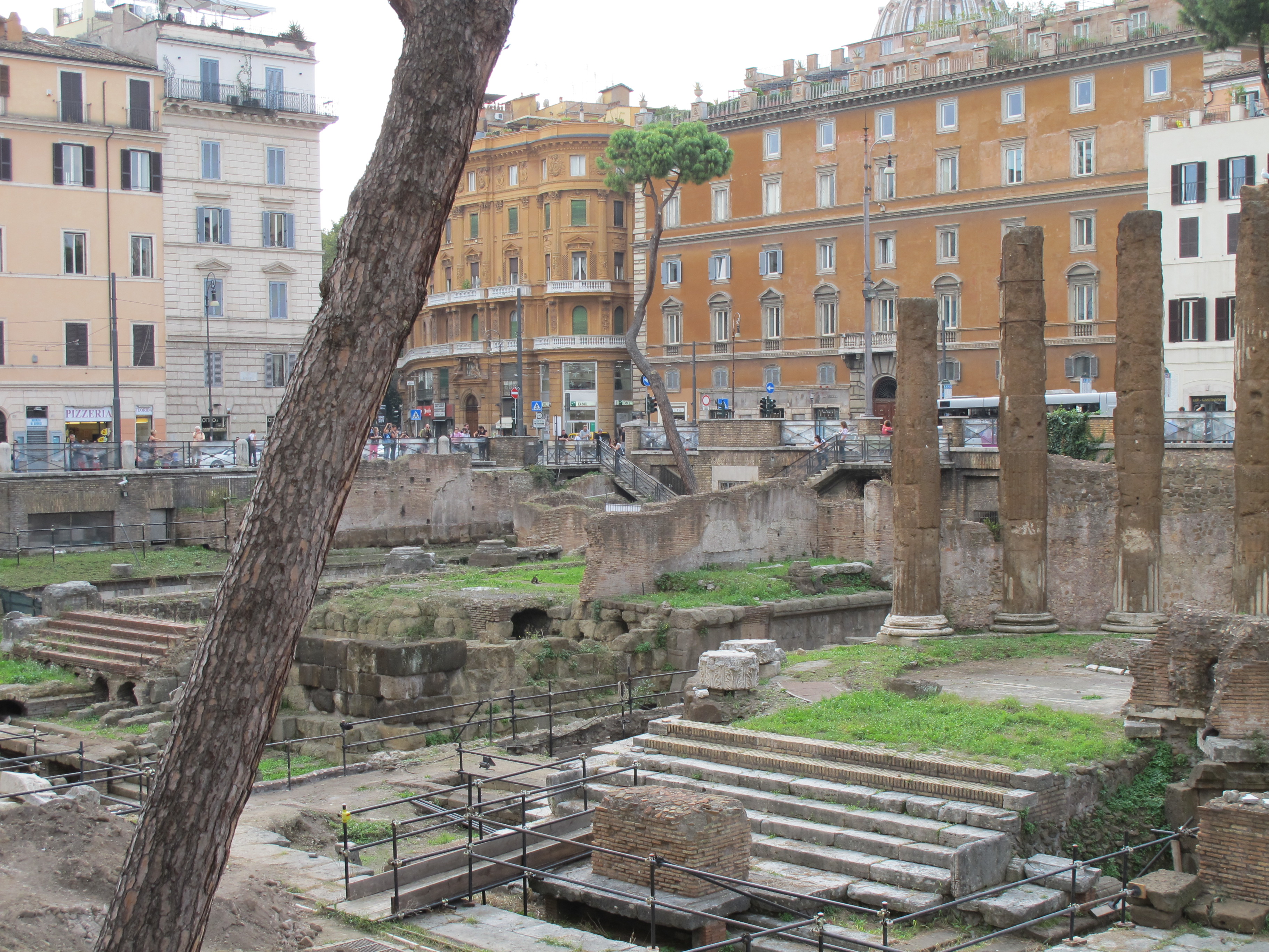 Largo Argentina — not named in reference to the country — is centrally located. It is close to many places for visiting, eating, and refreshment. It also sits at a node for several modes of transportation: a tram line’s terminus, a stop for several bus lines, and a taxi stand. And it’s walking distance from several popular sites of the Historic Center.