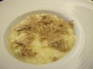 We moved on to a risotto with white truffle. Although we always enjoy talking with Massimo, all conversation ceased. We had been talking about politics, something that gets us all a bit charged up. There were loud words and gestures all around. Then the risotto came, and apparently we forgot all about U.S. and Italian politics. Yes, it’s that good.