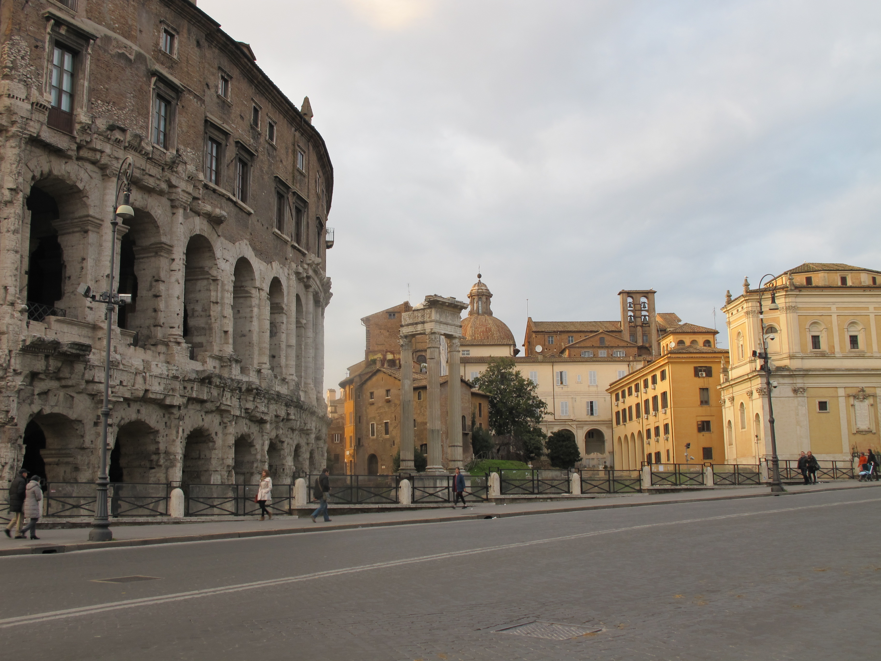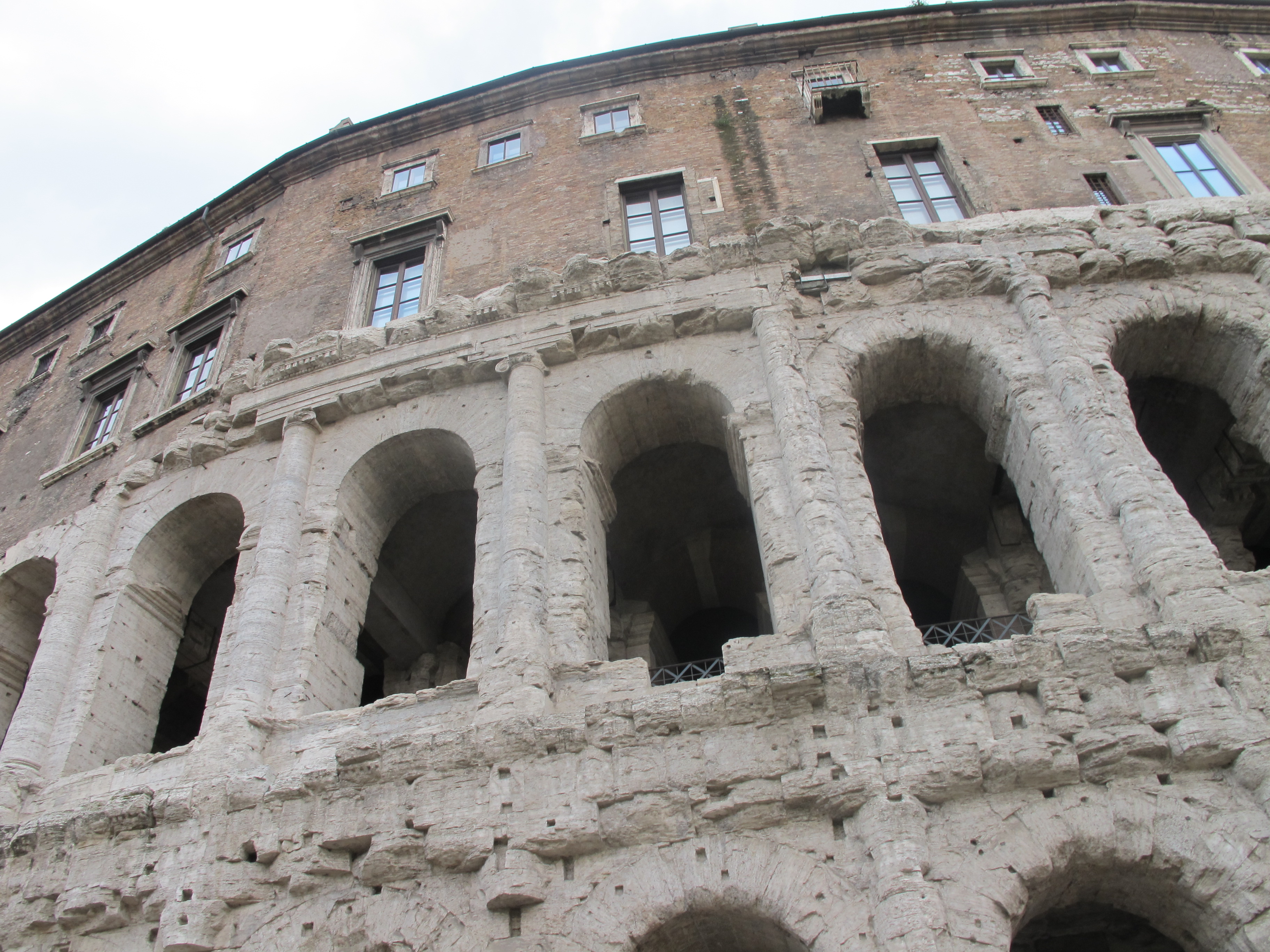 The Theater of Marcellus stands next to the lovely, and poignant, remaining columns of the little Temple of Apollo.