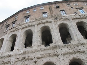 The area immediately surrounding the Theater of Marcellus is full of architectural bits of nearby antiquities — a reminder that this area was used as a quarry in the Middle Ages.