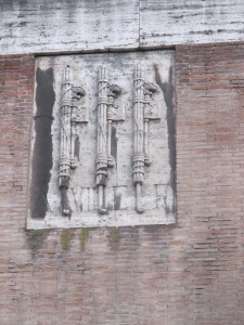 These are fasces — a reminder of preservation work from another, more recent, era of Roman history, the Facsist period.