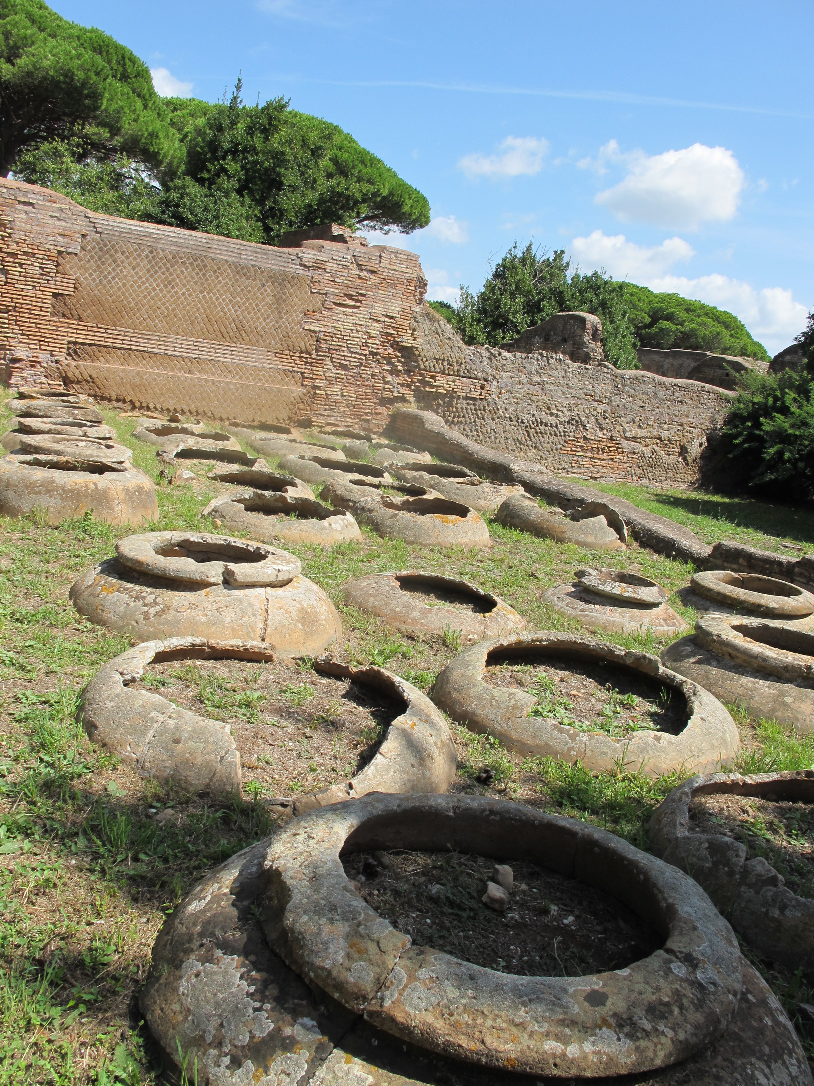 As you can figure out from the last word, “Ostiensium,” the altar is in what we today call Ostia Antica, one of my favorite easy jaunts from the apartment. And, as you may have deduced, it is an altar dedicated to the demi-god Hercules. The entire translation, noted in a scholarly article, is, “Ostilius Antipater, vir perfectissimus, prefect of the grain-supply and curator of the town of Ostia [erected this altar] for Hercules, the Unconquered God.” The altar stood at the Temple of Hercules, in the heart of Ostia, once a critical port for Rome.
