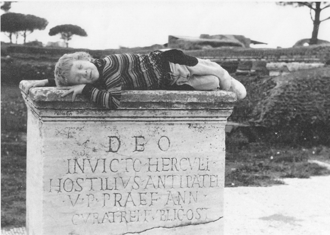 That’s me as a little kid in the picture above. The photo made its way home to me thanks to my friends at the American University of Rome, an institution that my family has long had ties to. Forgive me for lying on an ancient Roman altar — I was probably only five or so at the time. Umbrella pines and the remains of a wall are in the background.