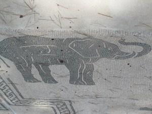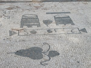 Ostia was Rome’s most important port, and many of the mosaics demonstrate the importance of commerce at this once bustling city. Some terrific ones are at the the “Forum of the Corporations,” located behind the theater. This is where “corporations” of ship-owners, importers, grain traders, and even wild animal importers had their shops, and indicated their business in the mosaic out front — in short, a permanent business sign, for which no translation would ever be needed.