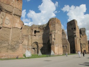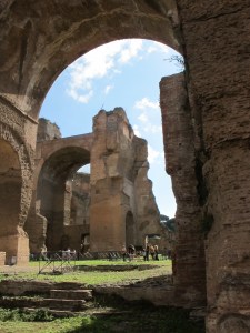 These baths were among Rome’s largest, built around 217 C.E., during the reigns of the emperors Septimius Severus and his nasty son, Caracalla.