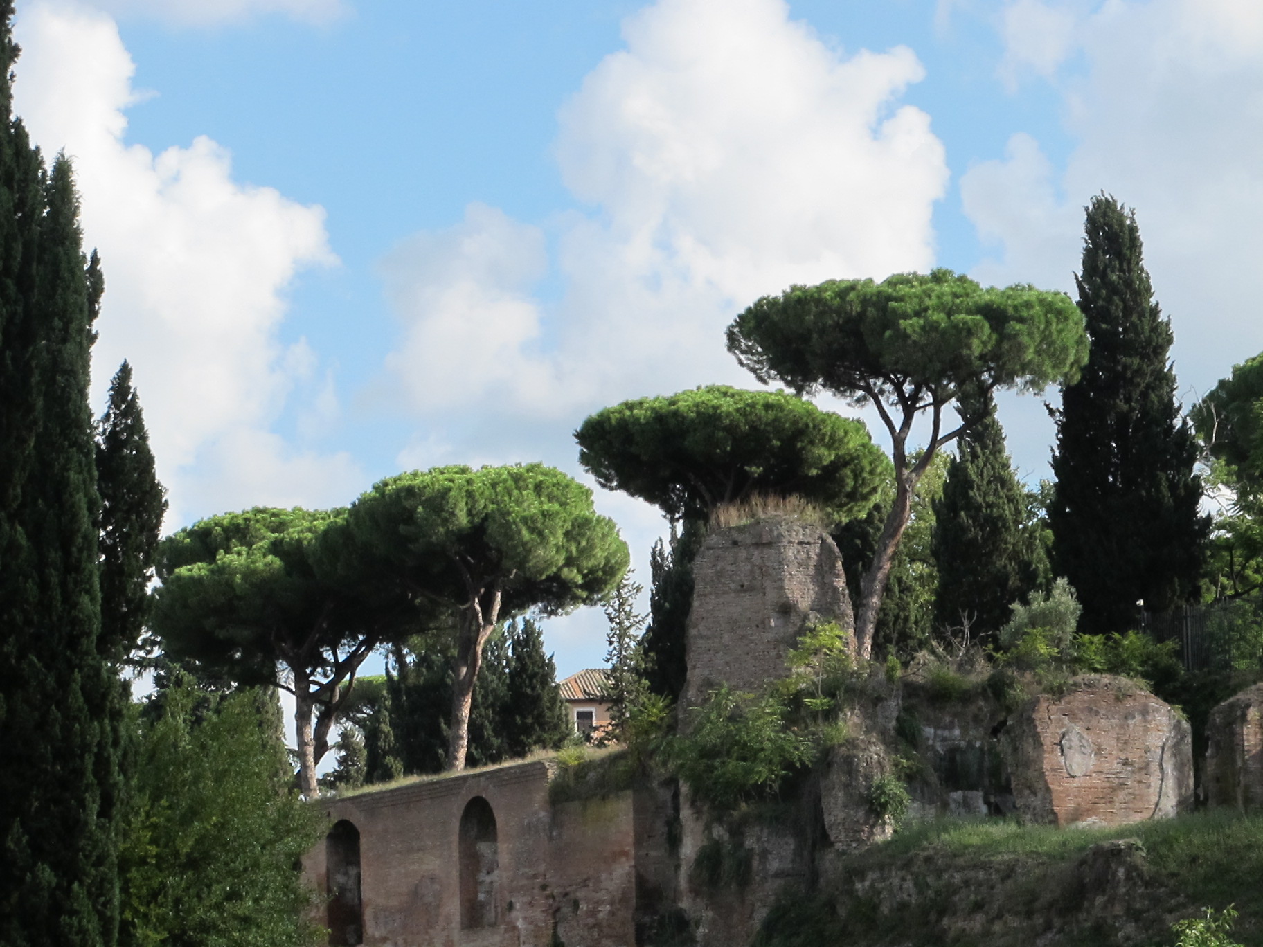 Last fall, we headed to the the Baths of Caracalla for a free Sunday (more on the status of the free Sundays in a post coming up soon). It was a gorgeous fall day, making for a glorious outdoor experience. Not only did we enjoy the beauty of the site, with its magnificent umbrella pine trees, but we really liked the modern art installations scattered throughout, which will be featured in our next post.