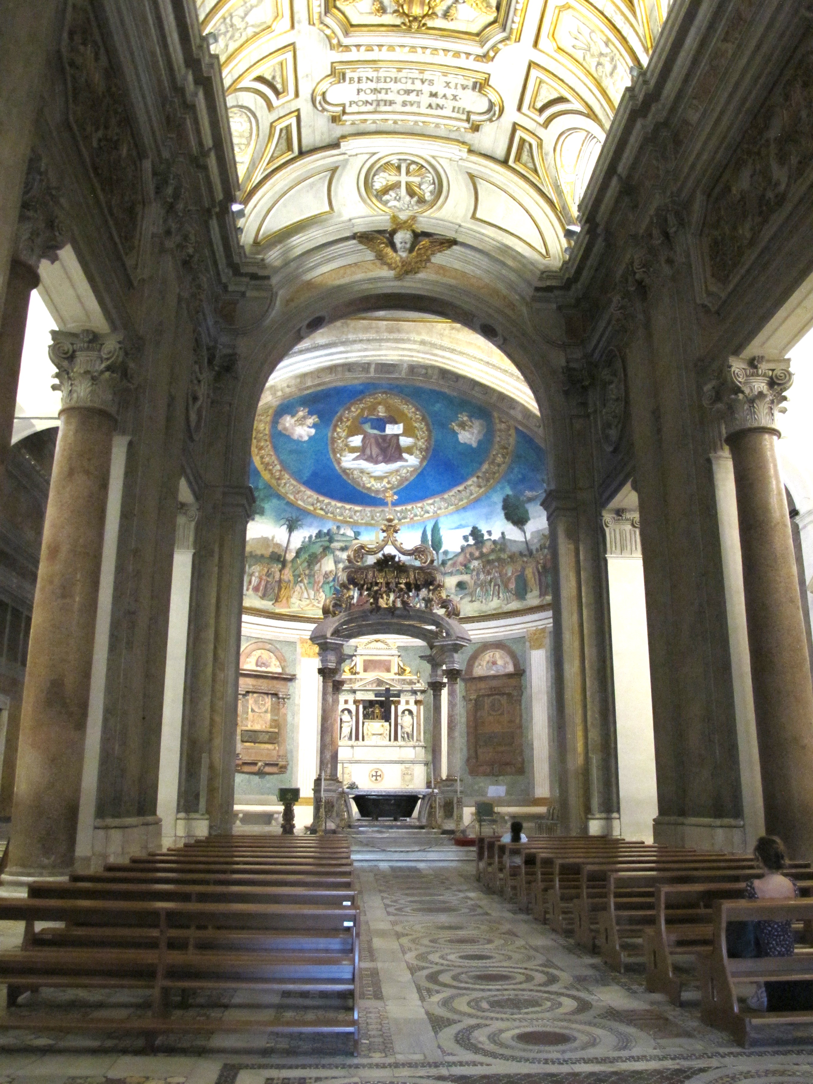 I recently went to a church which shall remain nameless since it had a sign that no photography was allowed and I don’t want the photo police (Rome probably has them, consider the high number of different police forces) to knock on my door. Except for the single photo I took when I entered, before I saw the sign (really!), I took no photos of the interior, although it was certainly lovely.