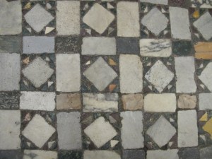 This church has some of the most wonderful examples of Cosmatesque marble patterns in Rome. Truly beautiful colored floor panels of marble, in marvelous patterns. Breathtaking. I know I won’t end up in hell for sharing them here with you. If the photo police do take me away, though, please come bail me out.