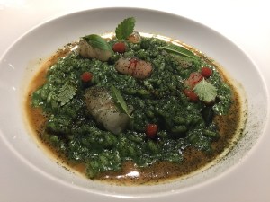 Likewise, we enjoyed a very springlike (and green!) risotto with nettles (a flavor we have come to truly appreciate) with delicate shrimp.