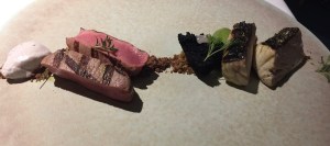 Another hit was scored with the “dim sum,” tiny and delicious dumplings. Add to that the dish at the top of this page, tuna belly “cured speck style” with tomatoes — a feast for both the eyes and mouth.