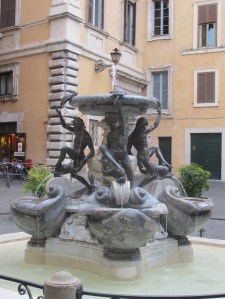 One of my favorite fountains in Rome is Fontana delle Tartarughe — the Turtle Fountain. It stands in Piazza Mattei, a typical little piazza named for a prominent family that lived there and paid for the fountain.