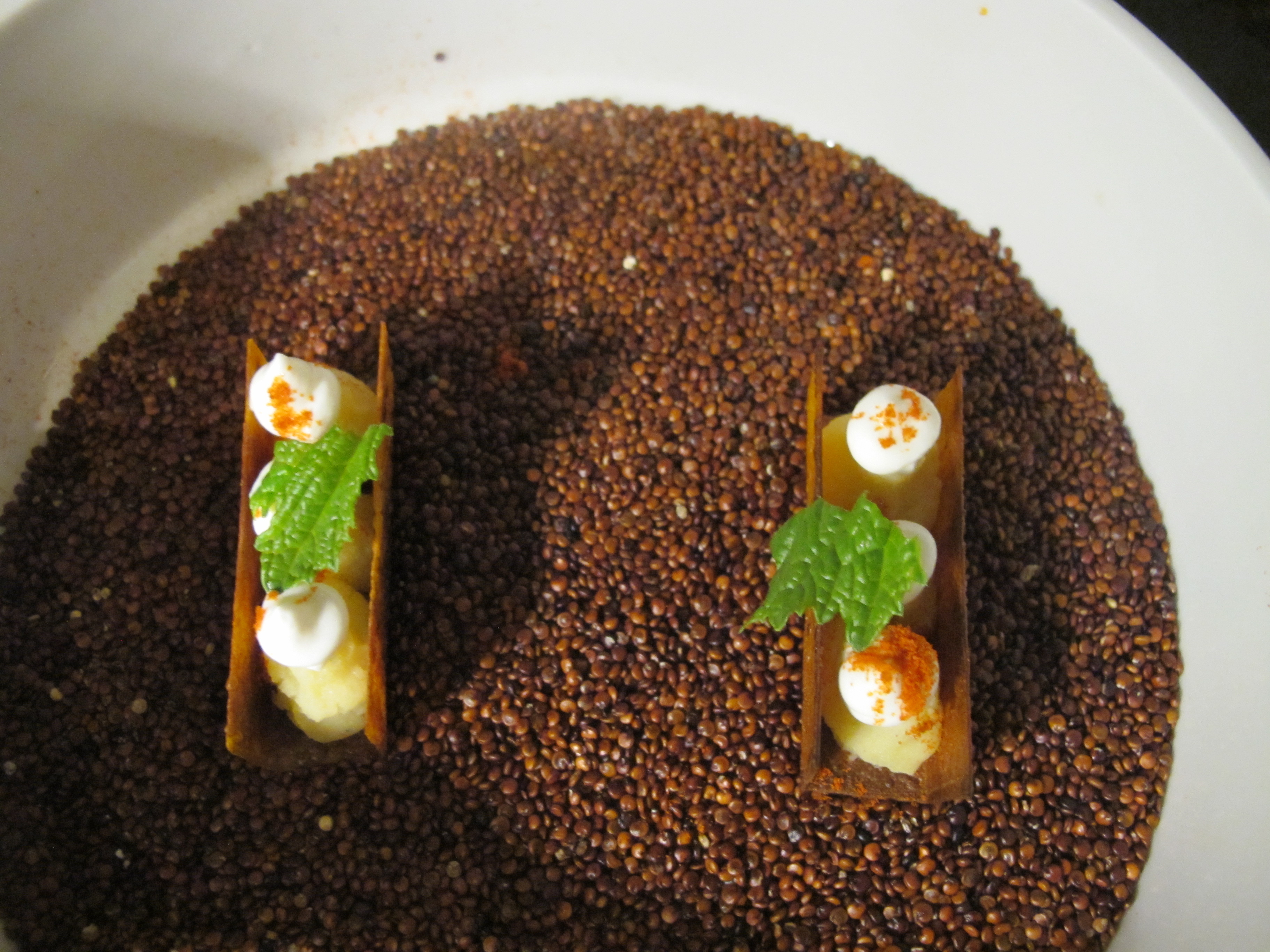 The restaurant focuses on seafood and seasonal produce. Yet the chef clearly enjoys playing with the visual elements of the meal, like vibrant colors (such as the beetroot amuse bouche at the top of this post), as well as textures.