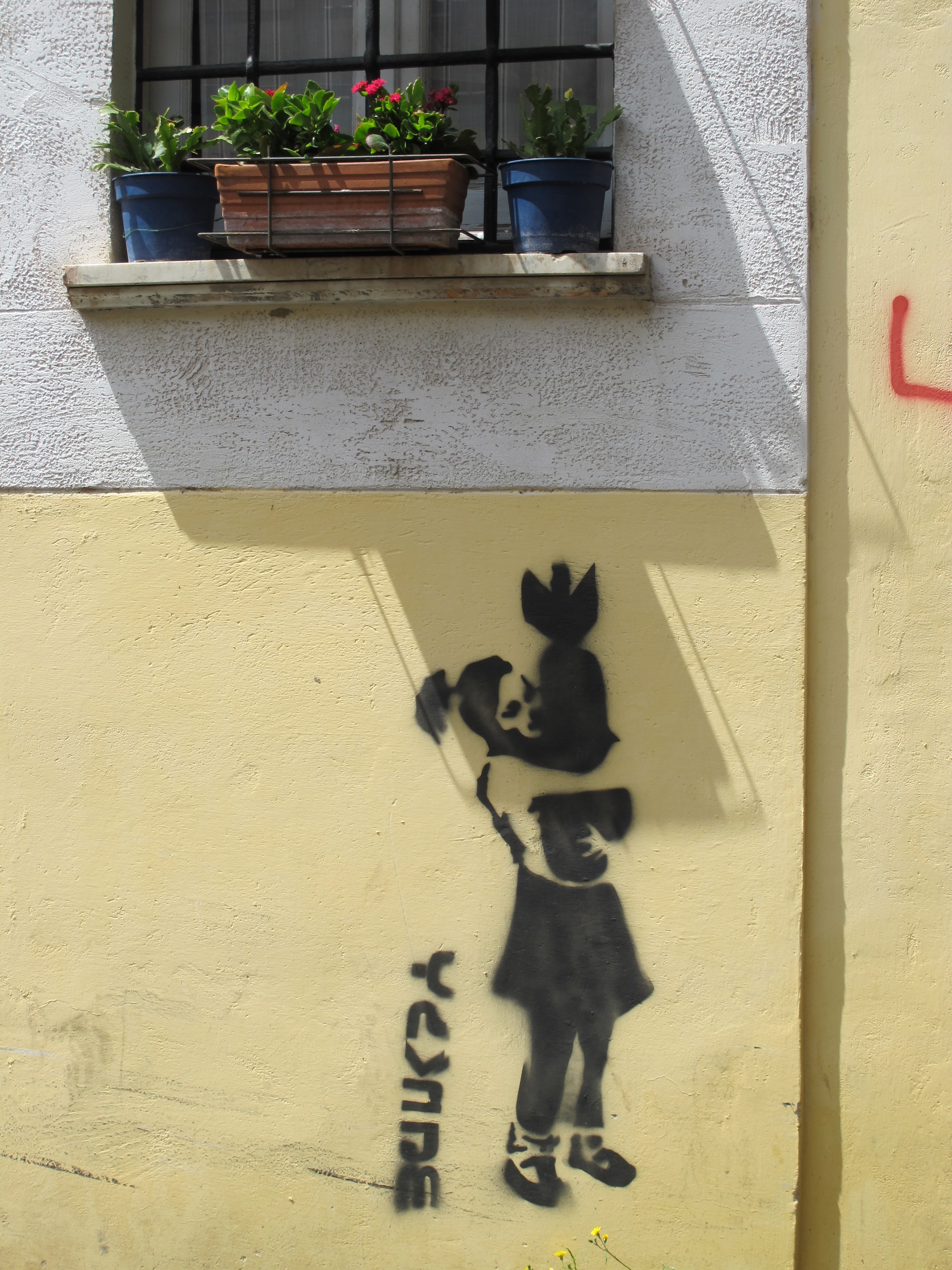 While going to dinner one night, I found a stencil of a girl with a bomb, à la Banksy. Is it a real Banksy, or an homage?