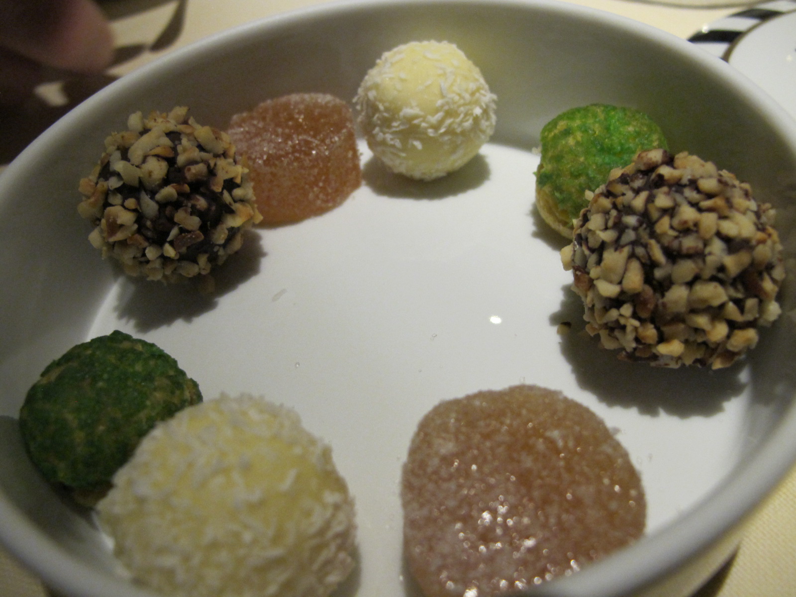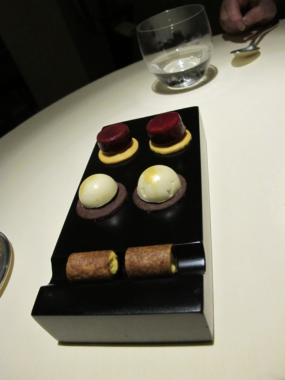 And then two rounds of complimentary sweets arrived, tiny and elegant bite-sized goodies.