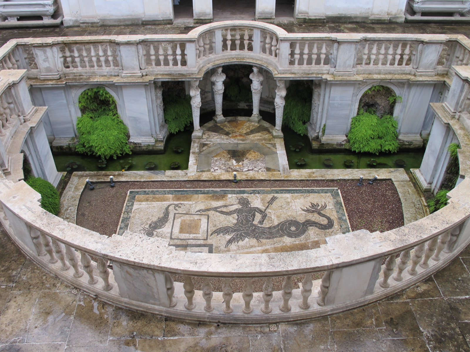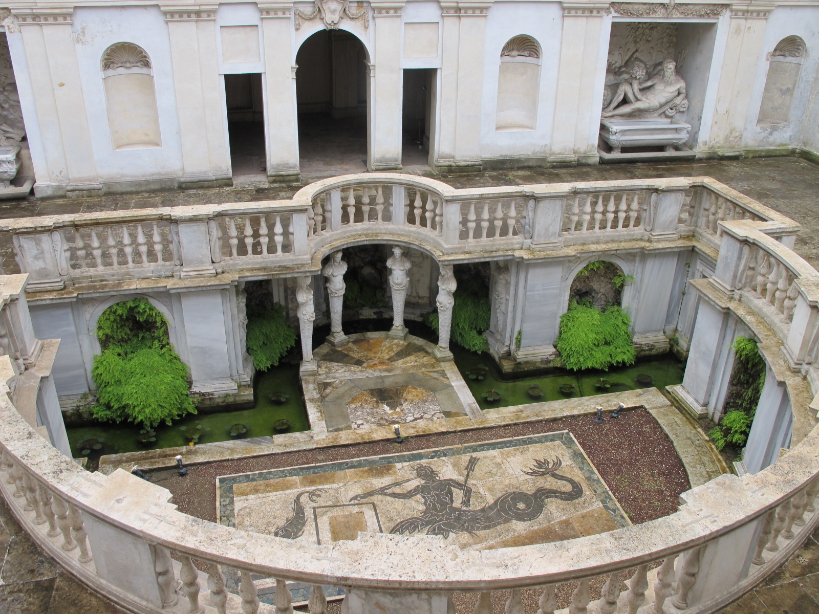 One of the architectural highlights of the villa is the two-story nymphaeum (large picture at the top of this post). Designed by Bartolomeo Ammannati, with input from Giorgio Vasari, it’s a multi-story opus. One can only dream of how magnificent it would be to dine here, under the summer stars, to the soft sounds of the water feature, the Fontana dell’Acqua Vergine.