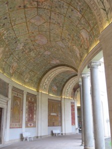 The interior is even more attractive than the exterior. The palazzo has a semicircular portico, covered with magnificent frescoes that take you back to ancient Rome.