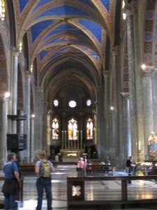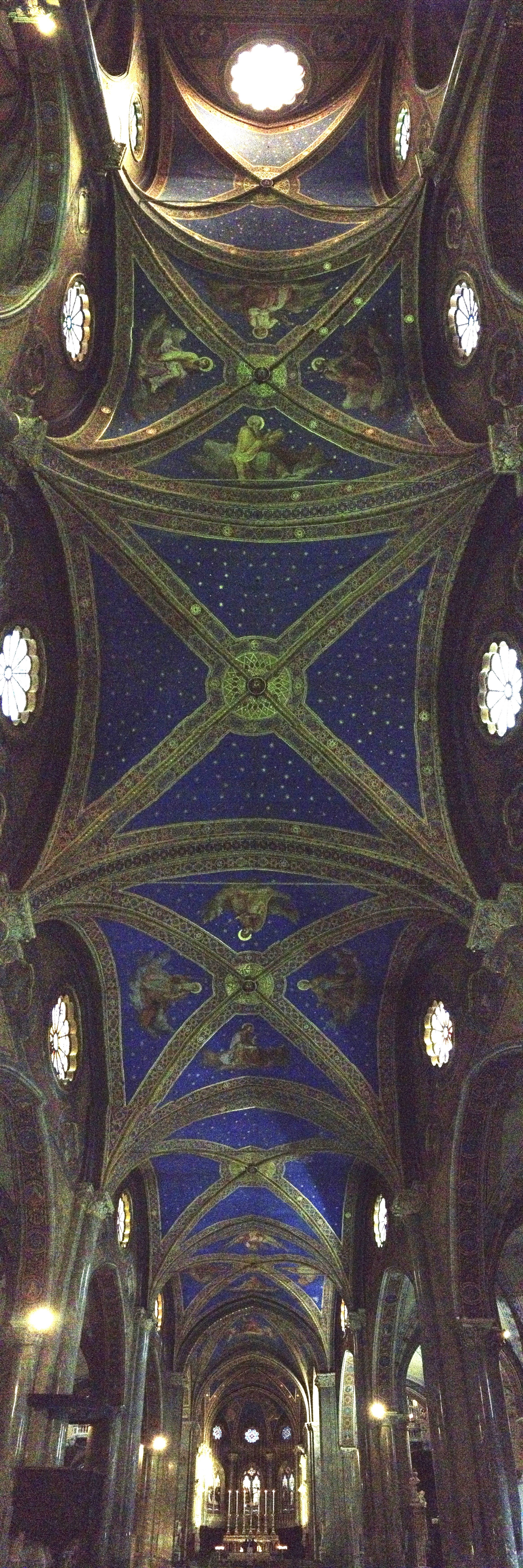 It’s an unusual church for Rome, due to its Neogothic interior (over older Renaissance and Gothic elements). There’s beautiful stained glass, painting, sculpture, and memento mori everywhere you look.