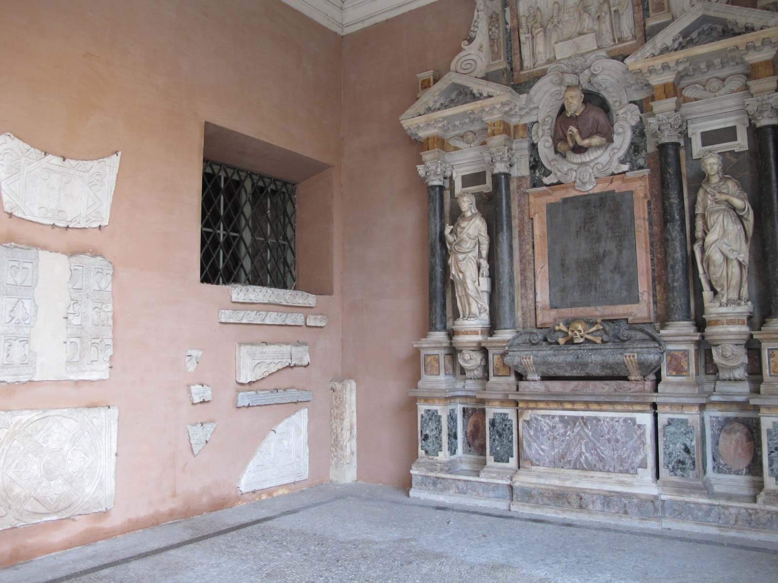 The church’s portico is decorated with all sorts of interesting bits of ancient architectural elements and plaques.