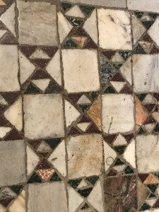 Yes, I love Roman floors. One of my first blog posts was about my standing in the Sistine Chapel, ignoring Michelangelo’s ceiling, because I was gazing in adoration at its floors. I’ve only become more obsessed by them as the years have gone by. The patterns are endlessly fascinating, the numerous colors of the marble are always beautiful.