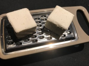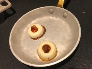 Finally, there was a deconstructed “Grandmother’s cake” crumbles served in an edible “plastic” bag, on a kitchen whisk.