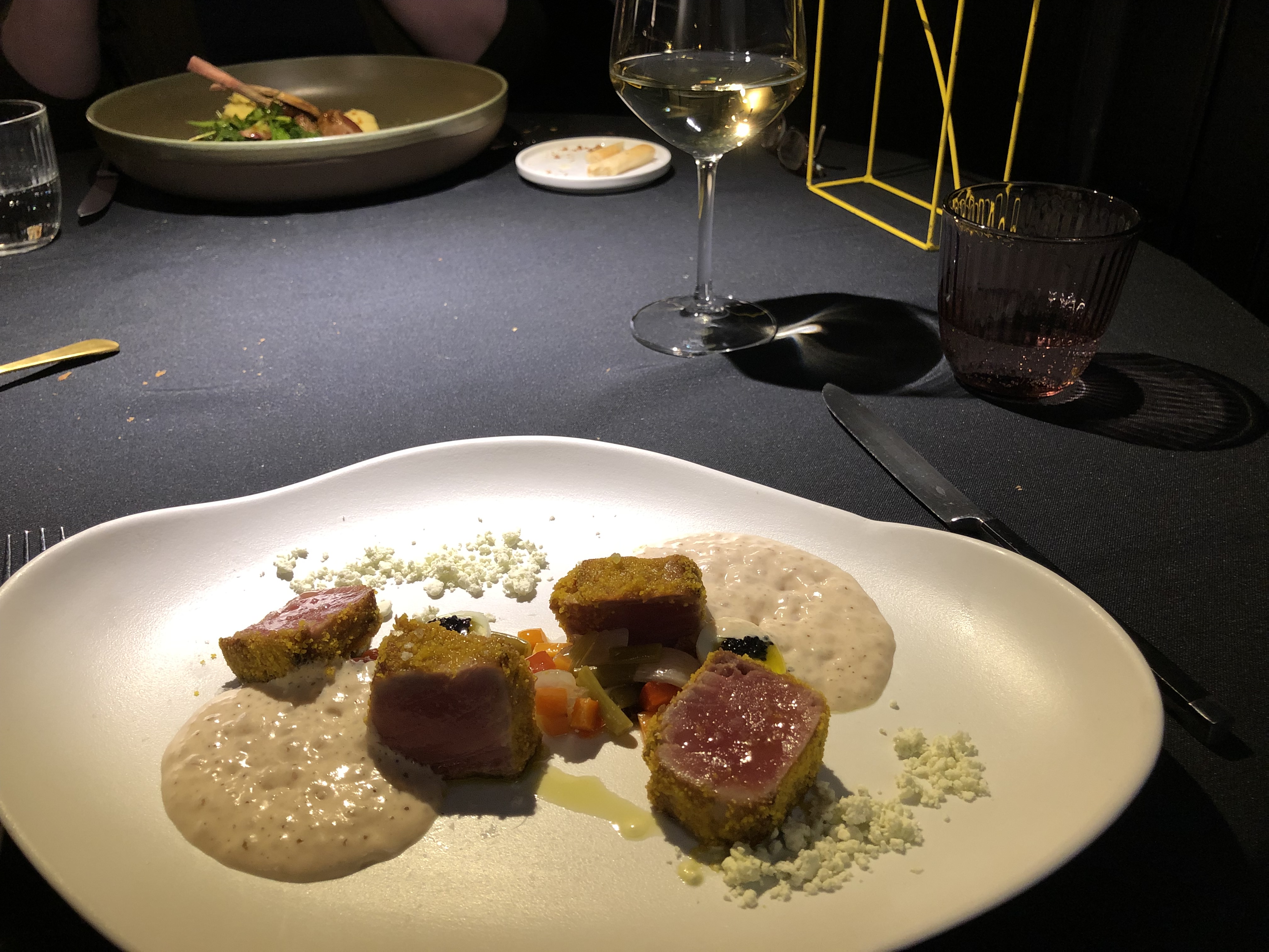 Our previous meal was back in the day when we were prone to try tasting menus, leading to being quite over-fed. This time, we made careful à la carte choices and were relieved to have done so. Indeed, the number of delicious “compliments of the chef” amuse-bouche you will eat is generous, almost overwhelming — so keep this in mind when ordering.
