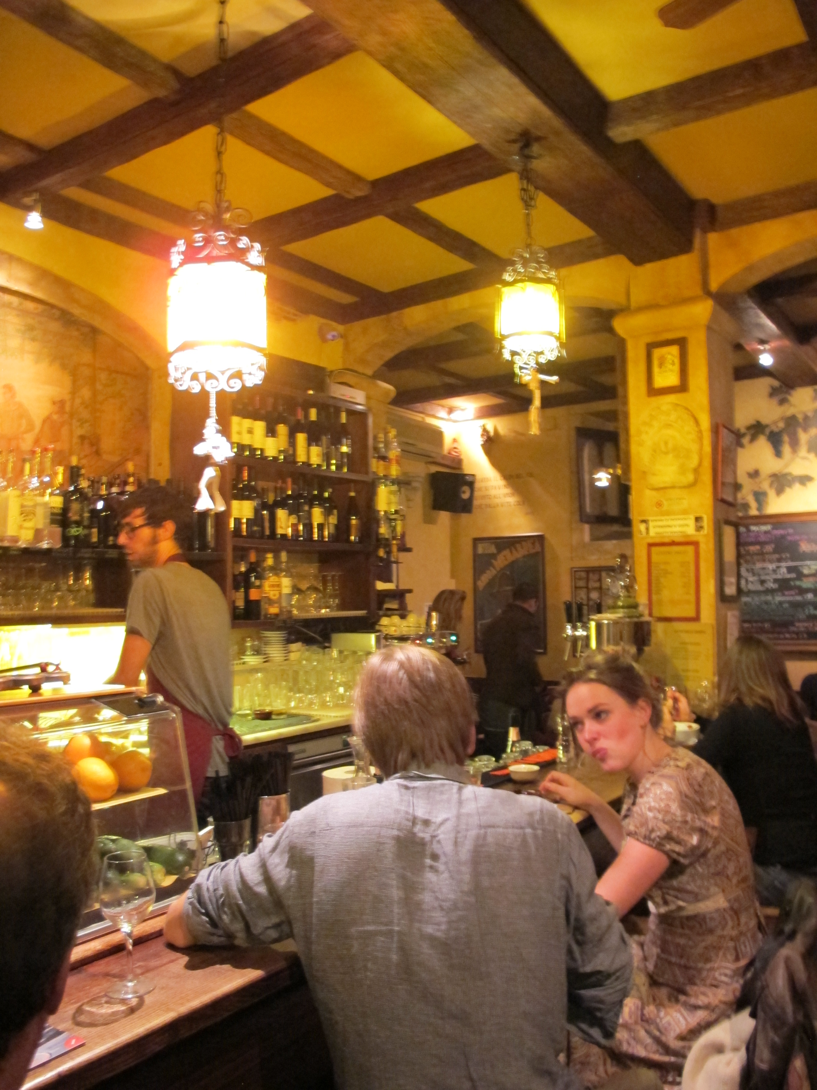 After just a few small plates and glasses of wine, we were too stuffed for dessert — even though they always several options that are good and inexpensive at around 5 euros. Maybe it was all that crusty bread. Nonetheless, the entire experience made this another pleasant evening in a cozy, friendly, and reasonably priced little spot we always love going to.