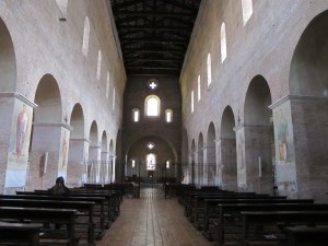 The second church is the abbey’s smallest, and just a few steps from the first. Santa Maria Scala Coeli is dedicated to the Virgin. The name “Scala Coeli” means “ladder to heaven.” Legend is that Saint Bernard was here in 1138, and had a vision of souls leaving purgatory and climbing a ladder to heaven.