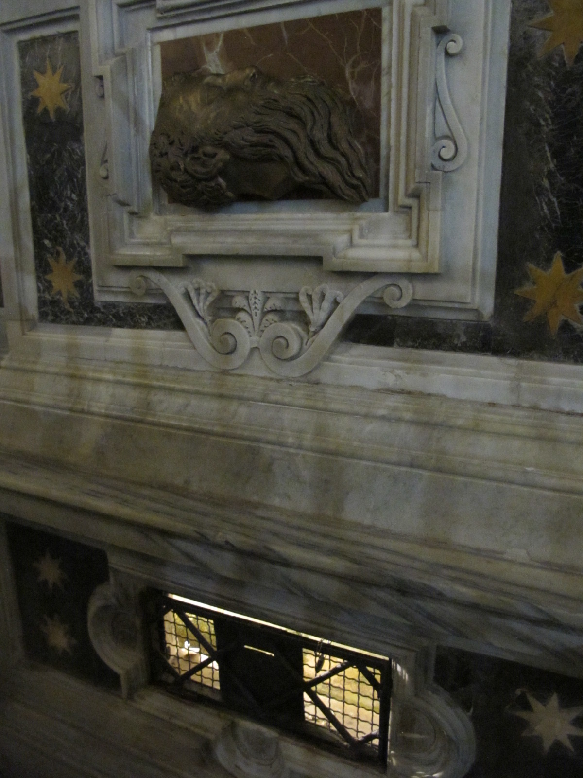 Of particular note are the three shrines, each one with a metal depiction of a severed head (a close-up of which is at the top of this post), indicating where the saint’s head touched the ground and a spring miraculously bubbled up.