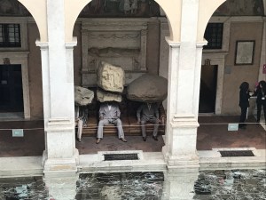 So, here we are back again at one of our favorite art exhibition spaces in Rome. Last time we were at the Cloister of Bramante was for the major Banksy exhibit. This time, it was for something even more CRAZY than Banksy. CRAZY: Madness in Contemporary Art is an exhibit of some “off the wall” installations. Some of it is just weird, some is “meh,” some of the installations are disturbing, and some are magical. I’ll focus on those installations that really moved us.