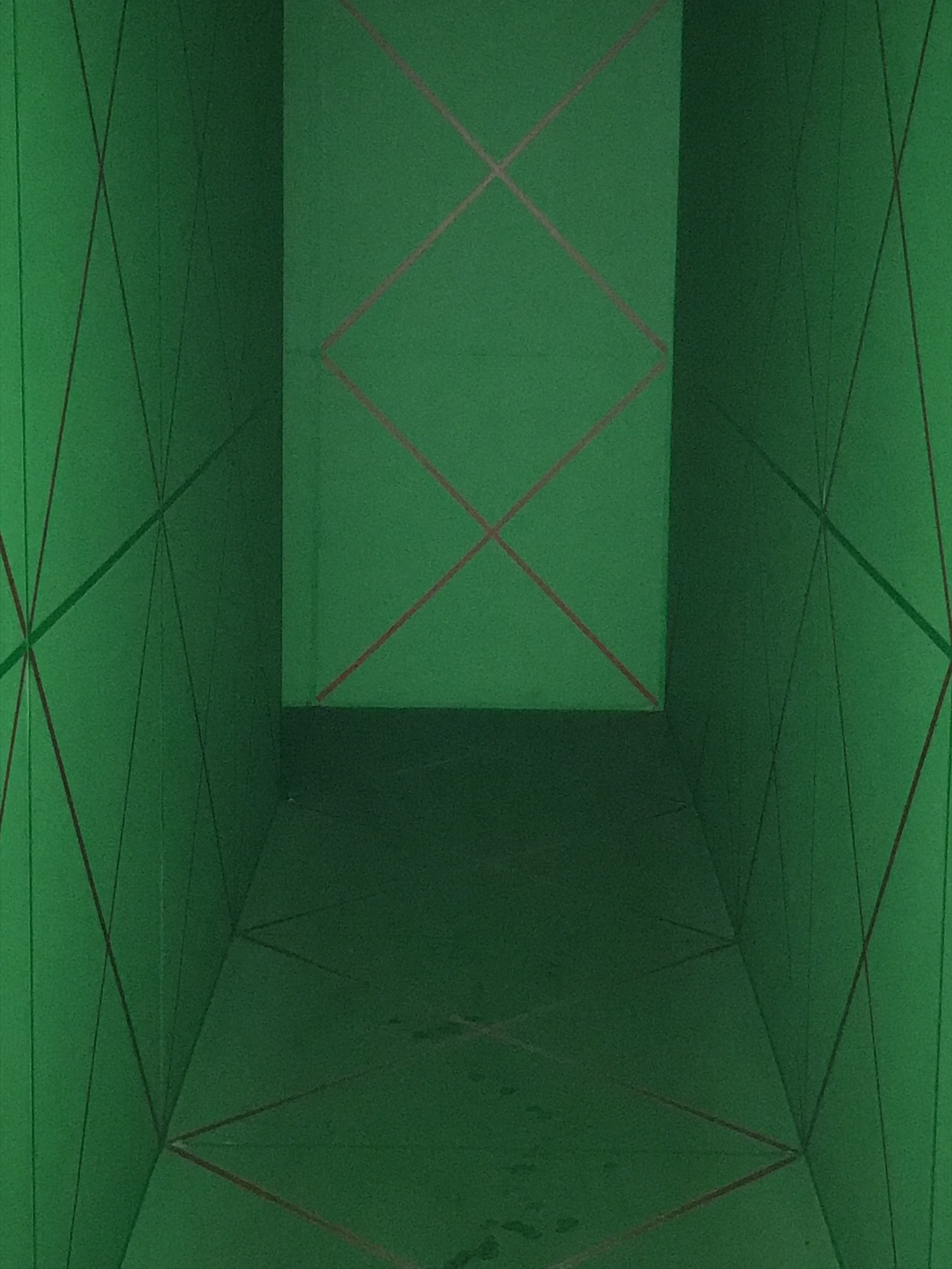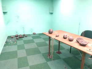 Finally you enter the exhibition space. After going through a few rooms of art that did not rock my world, one room is positively unsettling and definitely made me not want to go back to work — but I liked it. Not shown in this picture, there’s a hole in the ceiling. When you look up into the hole, it’s like looking into another world.