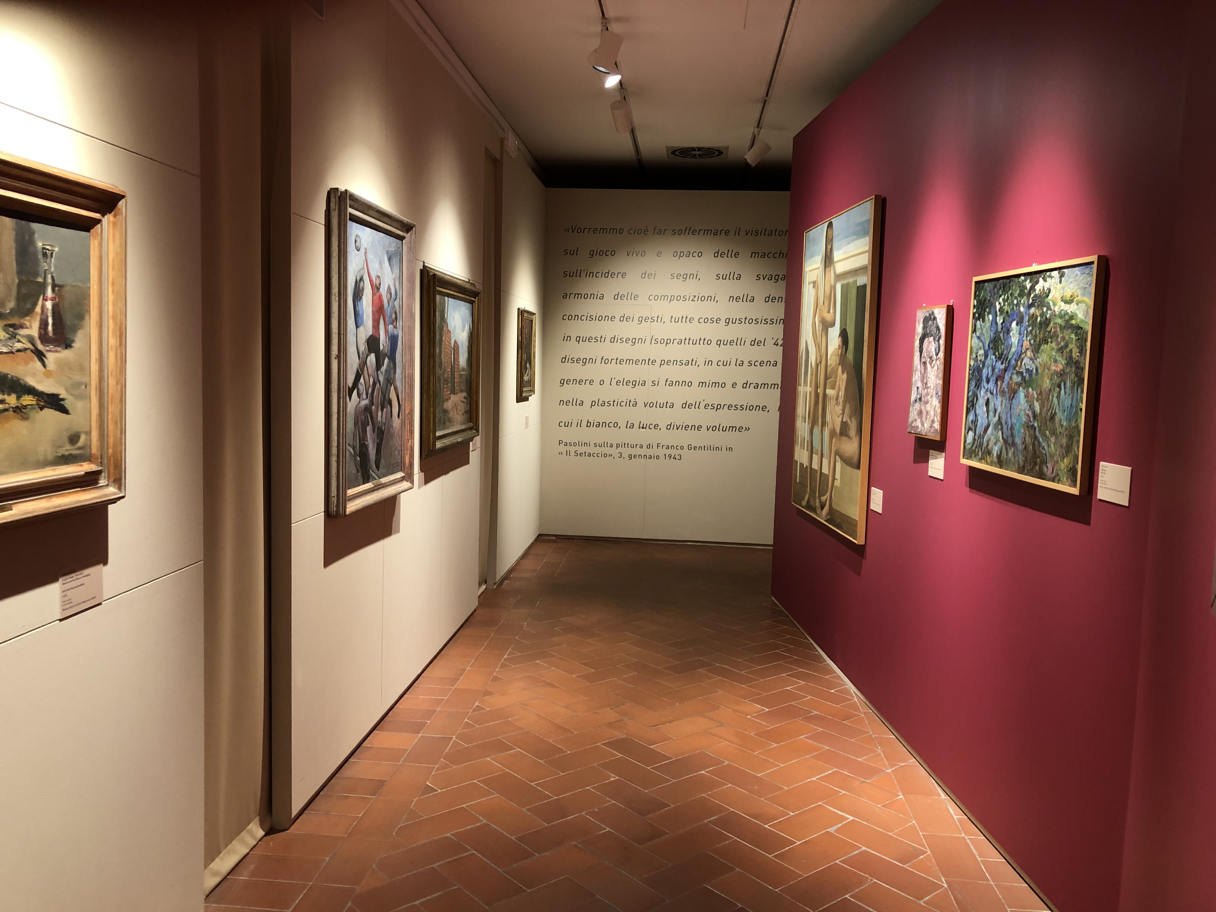 I particularly enjoyed the exhibit Pasolini Pittore, a special exhibit timed for the 100th anniversary of the birth of Pier Paolo Pasolini (1922-1975), whom I always thought of as primarily a filmmaker and writer. I was also interested because [name drop] my father knew Pasolini and had him lecture at AUR, inspiring some students to go on to filming careers. Little did I know, until I saw the exhibit, that he had also studied as a painter.