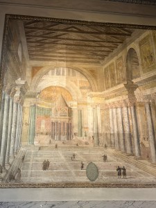 Of particular interest are the frescoes painted by Filippo Gagliardi which show the interiors of “Old” Saint Peter’s Basilica and Saint John Lateran (even though the artist was born too late to have actually seen the Old St. Peter’s Basilica).