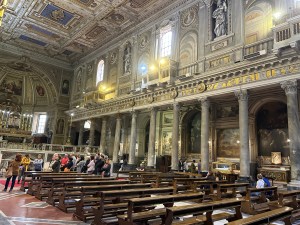 The Basilica di Santi Silvestro e Martino ai Monti dates from the 9th century. Like many Roman churches, it was built on top of churches that were yet more ancient. The basilica’s priest proudly discussed the history of the church, which he described as sitting upon many ancient layers — like lasagna, in his words. He pointed out how the church has changed over time, including how at some point in time the floor was lowered. This is why the columns today stand atop little platforms.